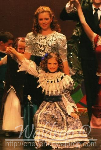 Once Cheyenne is done with her parts on stage she steps in and assist where needed. Because of her willingness to assist and her abilities to adapt under pressuer she has become a needed volunteer within the production. She helps out with scene changes, quick changes for the dancers, and staging props for various set changes. Cheyenne's assistance back stage is needed to assist in making sure that the production runs smooth.